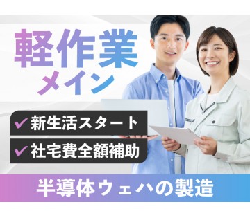 【新生活スタート♪社宅費全額補助】軽作業メイン!未経験OK◆半導体ウェハの製造・機械操作・検査