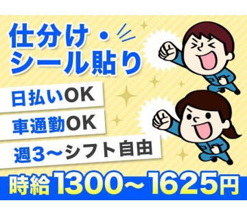 仕分け・梱包・ピッキング 部品供給・充填・運搬 その他軽作業・物流・配送 |
