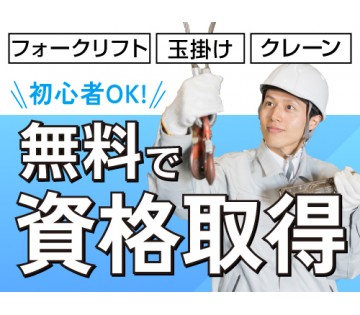 【仕事概要】 水処理に使用される化学品の製造を行っている工場でのお仕事です! 【仕事詳細】 工場内にて化学品の製造補助をお願いします。 ▼作業内容 ・化学品を製造する設備をタッチパネルで操作し、正常に運転しているか指示書を見ながら巡回点検する ・原料の粉をクレーンやフォークリフト(カウンター)を使って投入する ・化学製品や測定した数値を機械に入力する ・検査課に製品を持っていき検査を依頼する ・パレットに積まれた原材料や製品をクレーンやフォークリフト(カウンター)を使用して運搬する ・製品の梱包作業 ☆作業環境 空調が整っていますので、 年中快適に作業いただけます◎ ▼取り扱う製品について 取り扱う製品の大きさは、抱えて運べる程度で、重量は10㎏程度となります。 ▼習熟期間 30日以上かけてじっくり覚えていきます! 工場勤務が初めての方もご安心ください♪ 【注目ポイント】 ★マンツーマン指導でお仕事を覚えていただけます! ★フォークリフト・玉掛け・クレーンの資格支援あり◎ 無資格でも資格取得を目指せます♪ ★20代~40代前半の男性活躍中! 経験・資格をお持ちでない方も高収入が目指せます☆ ▼月収例はこちら! 月収例32.6万円/時給1400円 内訳:168h(内深夜58h)+残業30h+交通費 ※残業・深夜手当含む 資格をお持ちでない方は注目! 無料でフォークリフト・玉掛け・クレーンの資格が取れる、資格取得支援制度がございます! 資格を取得すると、スキルが身につくので お仕事の幅がグッと広がります! ▼こんな方にオススメ ☆資格を取ってリフト・玉掛け・クレーンのお仕事にチャレンジしたい方 ☆お仕事の幅を広げたい方 ☆経験を積み重ねたい方