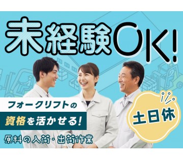 <社会保険完備長期雇用>30代~60代の方活躍中!!【フォークリフトオペレーター】日勤のみ 基本土日祝休み!工場見学もOKです(^▽^)/