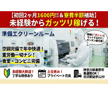 【初回2ヶ月1600円!!&寮費半額補助】未経験からガッツリ稼げる!空調完備のクリーンルームで「ポンッ」とカンタン軽作業♪