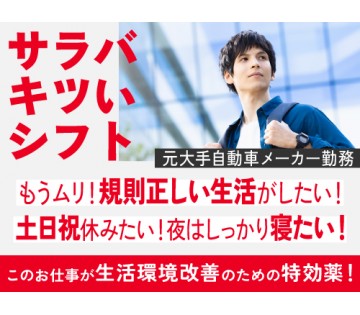 /1000人以上の人が働くダイハツ工業での軽自動車・小型自動車の製造のお仕事ポイント・慣れれば、簡単なモクモク作業のお仕事♪・入社前に実際に使う工具を用いた研修アリ・困ったときには、すぐにサポートを呼べる環境アリ!仕事詳細作業工程約1.5m2mの間を車が流れきるまでに、インパクトやトルクレンチなどの工具を用いて決められた部品を組付ける作業が主なお仕事になります!組付ける部品などは、指示書が手元にあ...