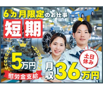 6ヶ月の短期◎自動車部品のマシン溶接!月収36万円可☆土日休み♪慰労金5万支給あり