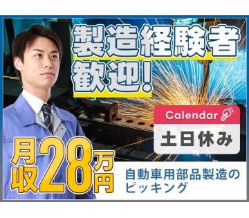 【土日休み】月収31万円可◎契約更新で時給UP!自動車用部品のピッキング◎製造経験者歓迎♪【履歴書不要☆オンライン面接OK】【入社キャンペーン実施中!】