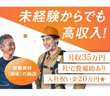 ★祝金総額7万円★【祝金20万円】月収35万円可◎未経験OK!建築資材の加工・検査◎20・30代男性活躍中♪家賃・光熱費が無料!食堂完備で食事有◎無料送迎バスあり!【履歴書不要☆オンライン面接OK】【入社キャンペーン実施中!】