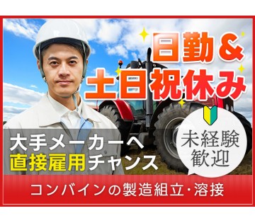 大手グループメーカー農業用機械の組立など/コンバインやトラクター、田植え機などの農業用機械を製造しています!未経験OK!丁寧な研修で安心のスタート♪<具体的には><農業用機械の組立>工具や部材を準備するラインで本機がくればパーツを組み付ける自分の持ち場分を繰り返す配属先によっては溶接、塗装、物流などの作業もあります詳細については面談時にご説明させていただきます。募集状況等によっては当該案件へのご案...