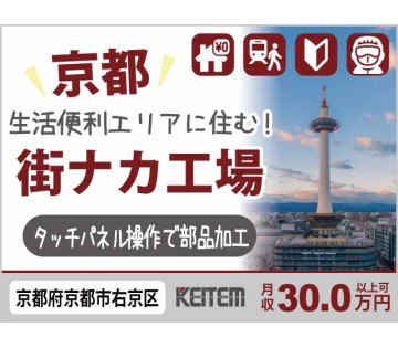20~50代半ばが活躍中!【タッチパネル操作で部品加工】『京都の街ナカ工場! 生活便利エリアで快適にすごす』#月給30万円以上 #20~50代前半活躍#未経験OK #寮費無料 #契約社員#西京極駅~徒歩15分 #クリーンルーム作業