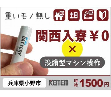 【乾電池を作る機械操作・検品】『作業中は会話ゼロでストレスフリー! 関西★寮費0円でモノ作りはじめませんか?』#月収28.1万円以上可 #20~50代半ば活躍中#時給1500円 #冷暖房完備 #座り工程あり #交替勤務≪月収28.1万円≫2...