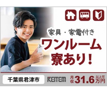 経験不問 【モニターチェック】 20~40代活躍中/力仕事なしの3交替/女性も多数活躍中/君津市の寮完備/月収31.5万円以上可