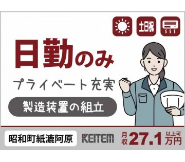 【製造装置の組立】『実質時給1550円! D.I.Yみたいな工具を使うお仕事』#日勤 #20~40代活躍中 #土日祝休み#部品や本体のネジ締め #残業少なめ#空調完備 #長期休暇年3回 #経験不問≪月収27.1万円≫20~50代半ばが活躍中...