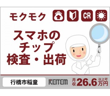 【スマホの中のチップ検査&出荷準備】20~50代半ばが活躍中/日勤で負担少ない/電子部品をもくもくチェック/目視検査/出荷準備/日払いOK/月収26.6万円