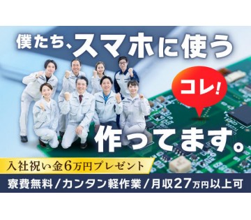 【最短当日入寮OK】\寮費がずっと無料/入社後に6万円の現金を分割支給★工場未経験でも月収33万円可★単純作業多めの軽作業◎