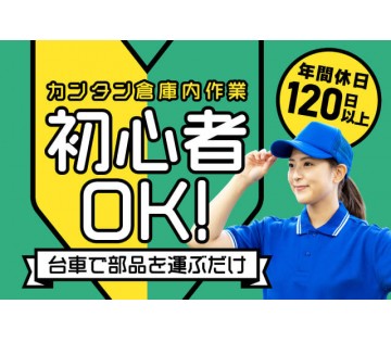 お仕事ナンバー5401[会社情報]創業60年以上。地域に根ざし、倉庫管理から配送まで物流業務をワンストップで手がける老舗企業です。[仕事内容]台車を使って部品の運搬【STEP1】部品置き場から部品を選ぶ【STEP2】決められた場所に台車を使って運ぶ単純作業なので、未経験でも大丈夫台車を使って運ぶので体への負担も少ないですよ♪[職場環境]社員食堂メニューは栄養士監修!格安で食べられる♪日替わりだから...