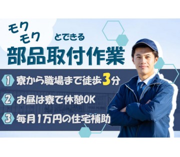【最短当日入寮OK】モクモクと作業OK!小さな部品のピッキングや組付け作業◎寮から職場まで徒歩3分◎住宅補助10,000円支給◎