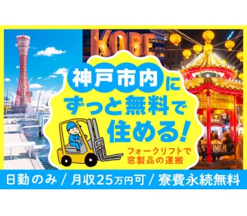 【最短当日入寮OK】フォークリフトで窓製品を運ぶお仕事♪神戸市内にず~っと無料で住める★日勤のみ★月収25万円可★