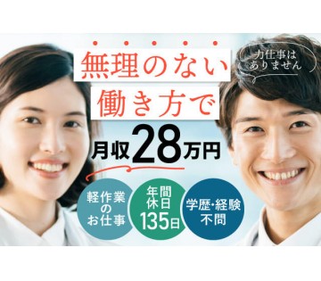 お仕事ナンバー4521[どんな企業]スマートフォンやパソコンなどに使用される、ディスプレーの基になる製品を作っています。2001年に設立し、現在約400名の社員が働いています。[仕事内容]液晶画面の加工や検査【STEP1】製品を機械にセットして、手順通りにボタンを押します。【STEP2】加工された製品を取り出して、検査をします。パソコンを使用して業務の引継ぎを行うので、文字のタイピングも必要になり...