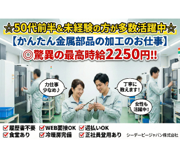 〈栃木県河内郡上三川町〉☆50代前半&未経験の方が多数活躍中☆ 【かんたん金属部品の加工のお仕事】◎驚異の最高時給2250円!!