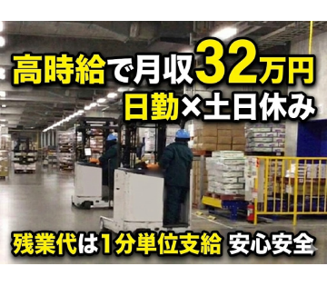 【★高時給1,900円】「月収30万円以上可能でとにかく稼げる!」◎人気の日勤×土日祝休み【大手倉庫でフォークリフト入出庫作業/手元作業少なめ】◎安全講習あり/におい&汚れ無し◎残業代は1分単位支給◎休憩所完備!
