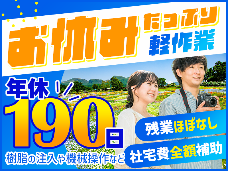 未読 <四日市市>【年休190日×月の半分がお休み!】軽作業☆樹脂の注入や機械操作など♪社宅費全額補助◎【...