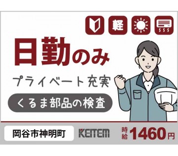 【仕事No.10696】【経験不問/座り作業アリ/エンジン部品の検査/PC作業/女性活躍】自動車のエンジンに使われる部品を製造する工場でのお仕事です。部品にキズやデコボコがないかの目視チェックや、工具... |