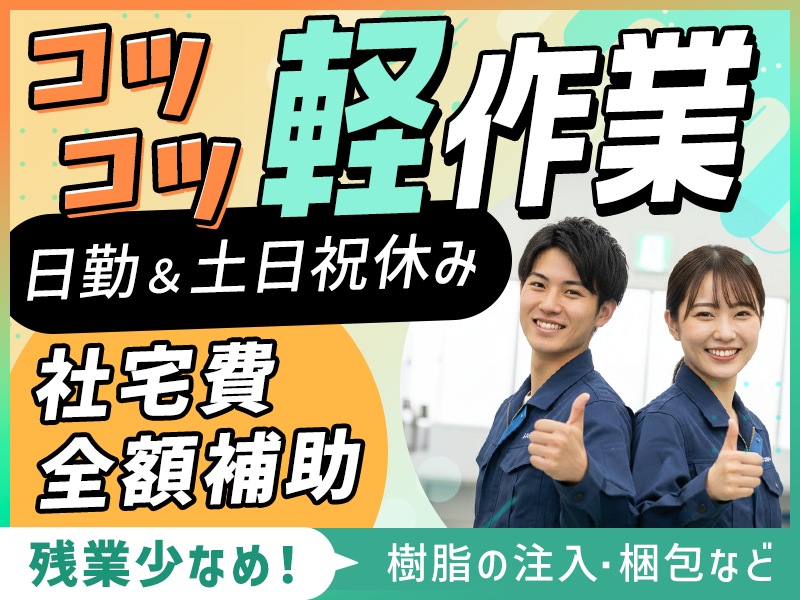 ...梱包作業原料の投入や運搬時は約25kgの重量取り扱いあり配属工程により5勤2休、または4勤3休シフト勤務<職場環境>・クリーンルーム作業・空調完備の快適環境・未経験スタート多数!若手~ミドル男女活躍中... |