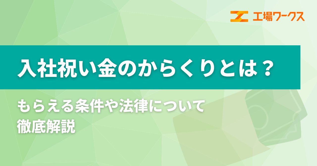 求人サイトに記載されている「入社祝い金」「就職お祝い金」のからくりや支給条件について疑問に思う方も多いのではないでしょうか。本記事では、入社祝い金のからくりや今後規制される法律について解説します。また「即日もらえる?」「もらって辞めることはできる?」といったよくある質問の回答も紹介しているので、求職活動をしている方は必見です。