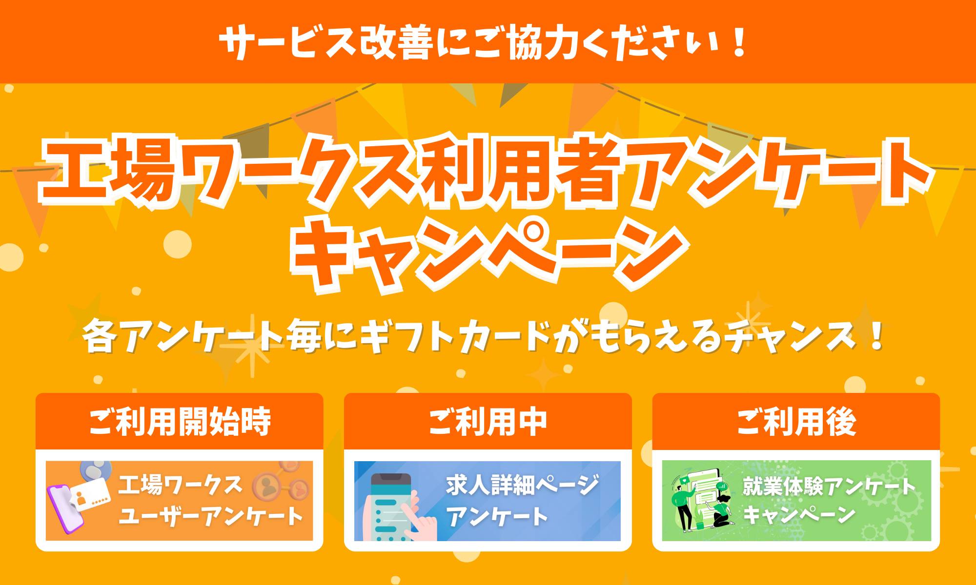 工場ワークスにログインの上で、3件以上ご回答頂くことでキャンペーンの抽選対象となります。