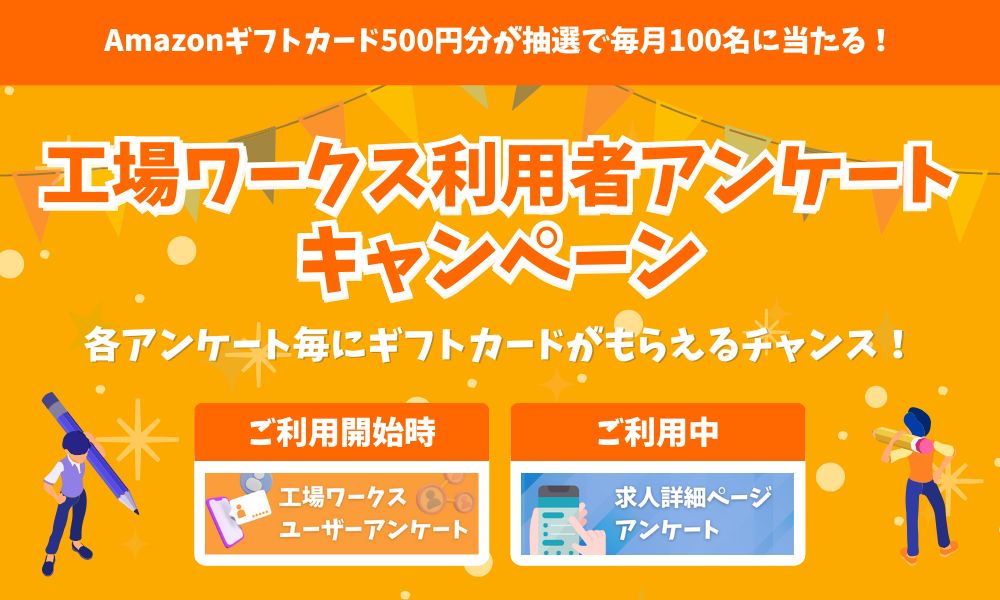 工場ワークスにログインの上で、3件以上ご回答頂くことでキャンペーンの抽選対象となります。