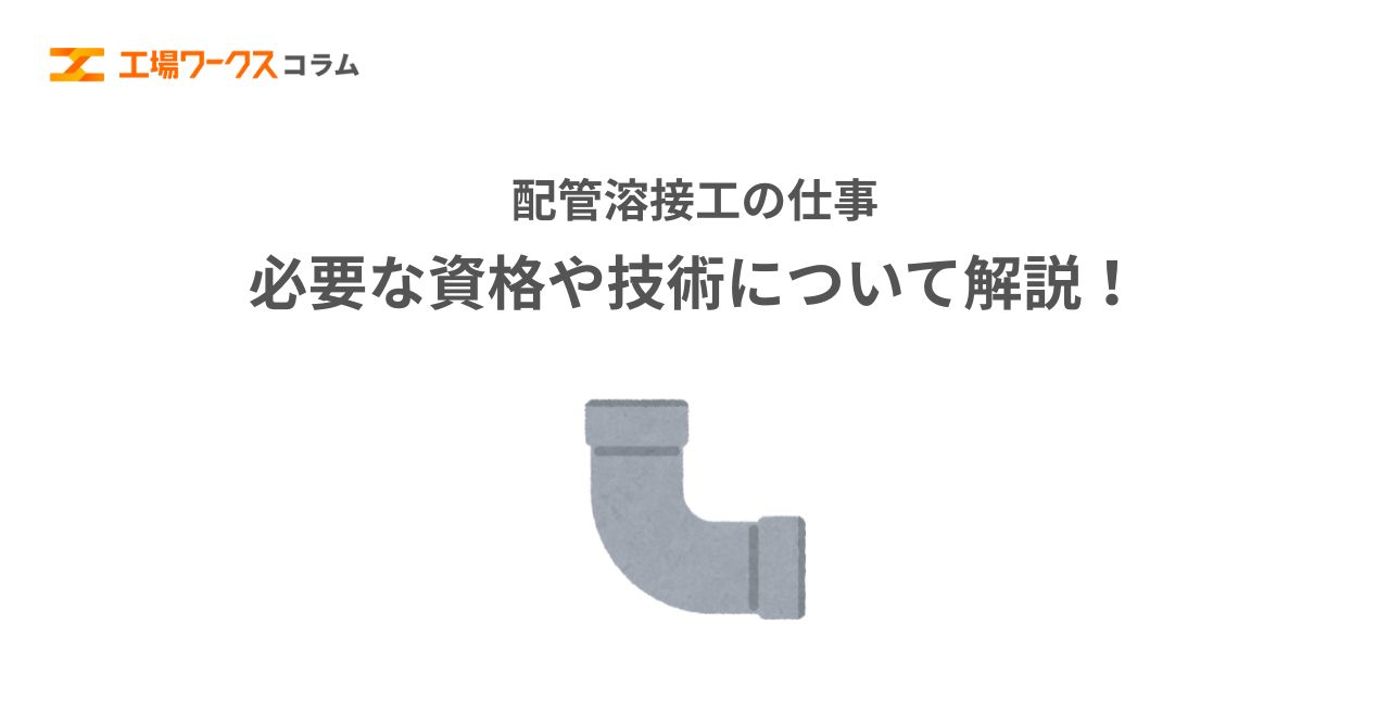 ちなみに配管溶接工と配管工を同じ仕事だと考える方は少なくありませんが、配管工は溶接に限らず配管の設置やメンテナンスを幅広く行うため、配管溶接工に比べると仕事の範囲が広いという違いがあります。