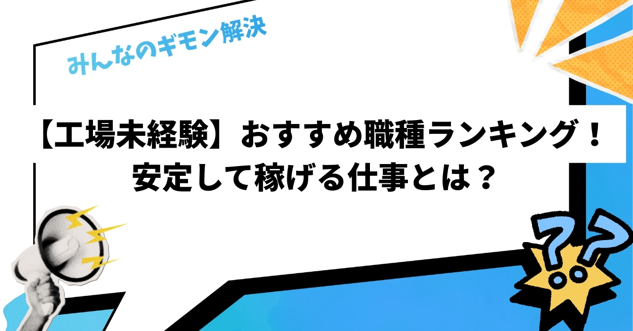 工場での仕事は、学歴や経験を問わず、ゼロから専門スキルを習得し、高収入を目指せる可能性を秘めています。この記事では、工場勤務が未経験者にとってなぜ魅力的なのかを深掘りし、さらに安定して稼げるおすすめの職種をランキング形式でご紹介します。