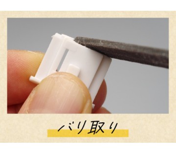 ・型からはみ出した樹脂をやすりを使ってバリ取りします。