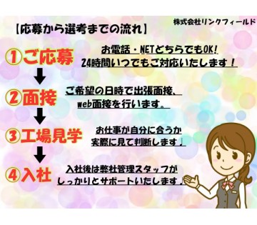 ※業務内容は入社前の工場見学でしっかりとご確認できます♪