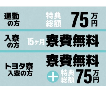 即入寮OK/20~40代活躍中/旅行、クルマ、マイホーム…あなたの「やりたいこと」にぐっと近づく!/月収例42.4万円/【入社特典総額75万円】【トヨタ自動車でクラウン等の自動車製造】(No.TT-10809-01-JP)
