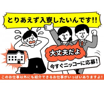 【最短当日入寮OK】体への負担すくなめ★製品を機械にセットしてボタンを押すお仕事★家具・家電付きの1R寮完備★