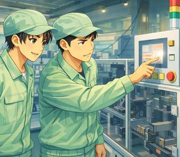 作業者の役割は、機械の操作と部品の扱いが中心です。