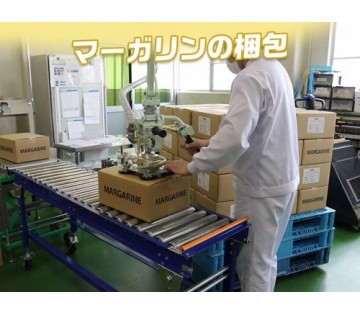業務用マーガリンが入る容器の準備から商品の積み上げまでをお願いします。