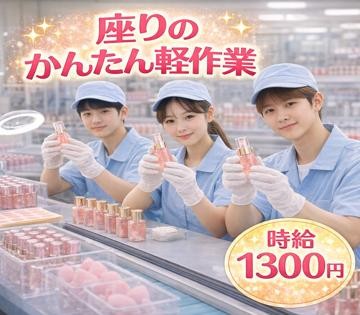 人気コスメのかんたん軽作業/座り作業☆日勤のみ、即日入寮OK!家電付き1R寮完備、週払いOK