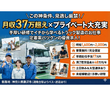 - 日勤で年収600万円以上!寮費無料/満了慰労金最大210万円